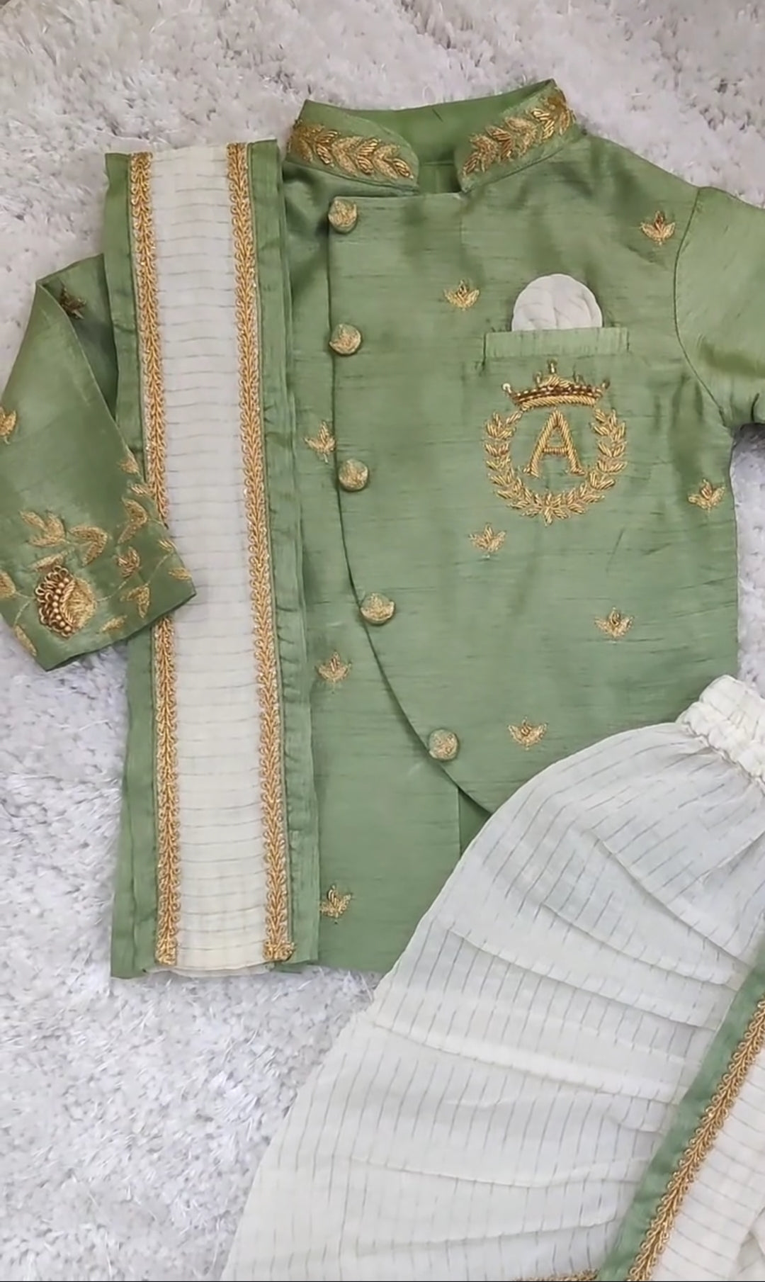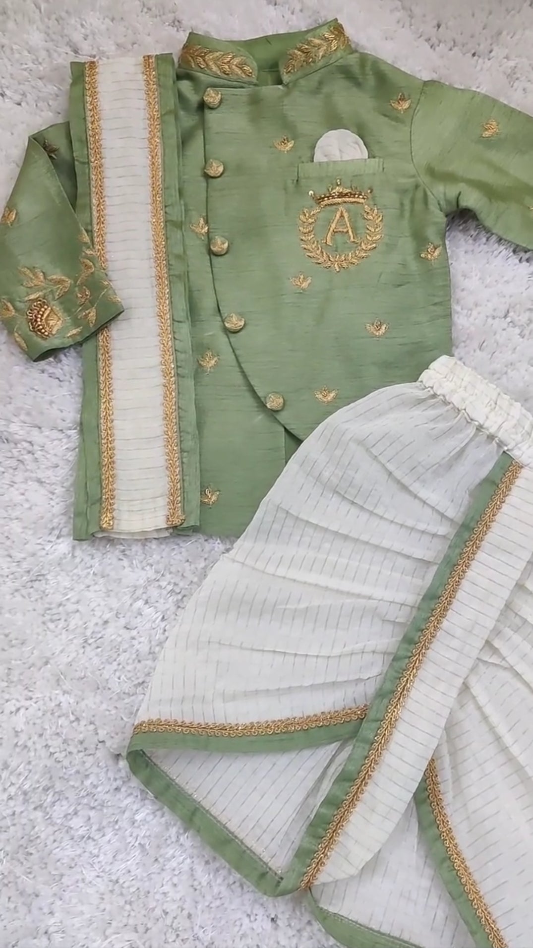 โจ Dress your little one in timeless elegance with our Premium Boys Raw Silk Kurta & Chanderi Dhoti Set.