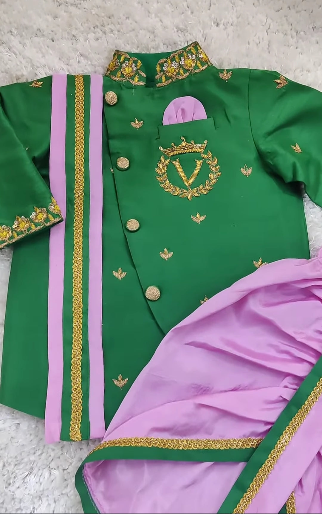 ๐ฟ Intricate handwork and lace detailing add a regal charm to this festive ensemble.