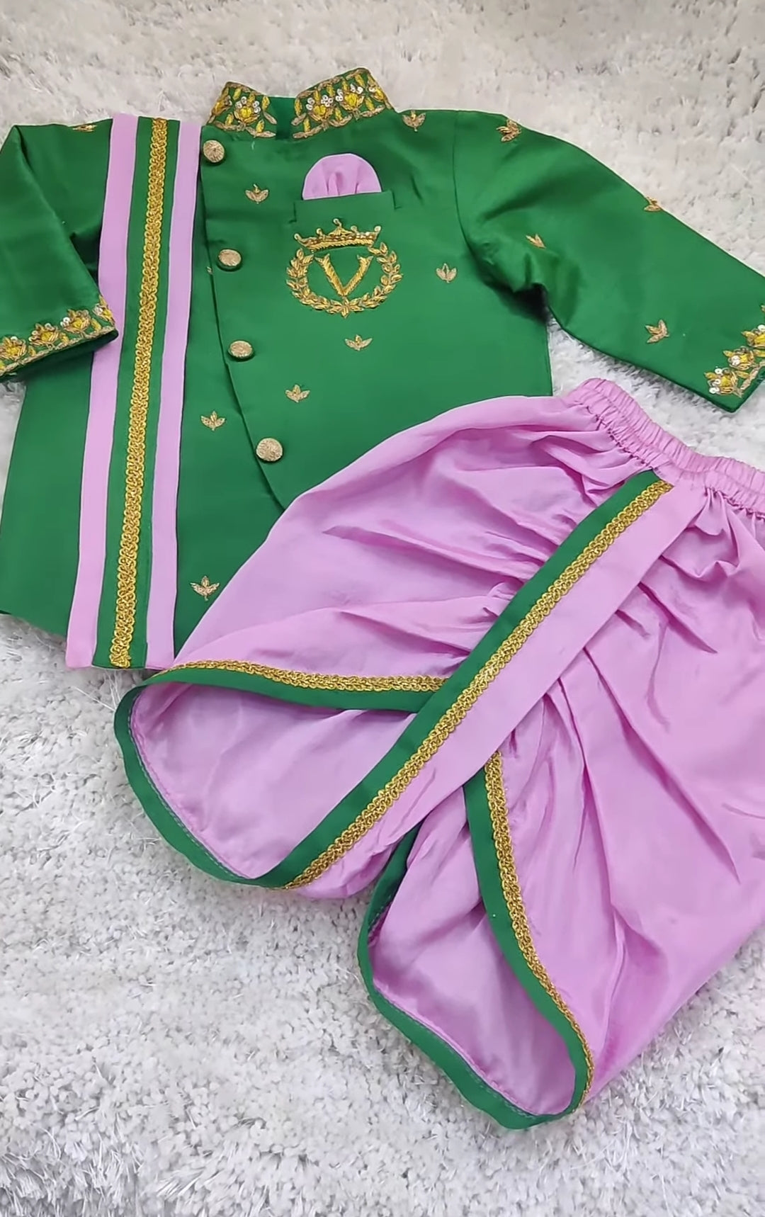 โจ Dress your little one in timeless elegance with our Premium Boys Raw Silk Kurta & Chanderi Dhoti Set.
