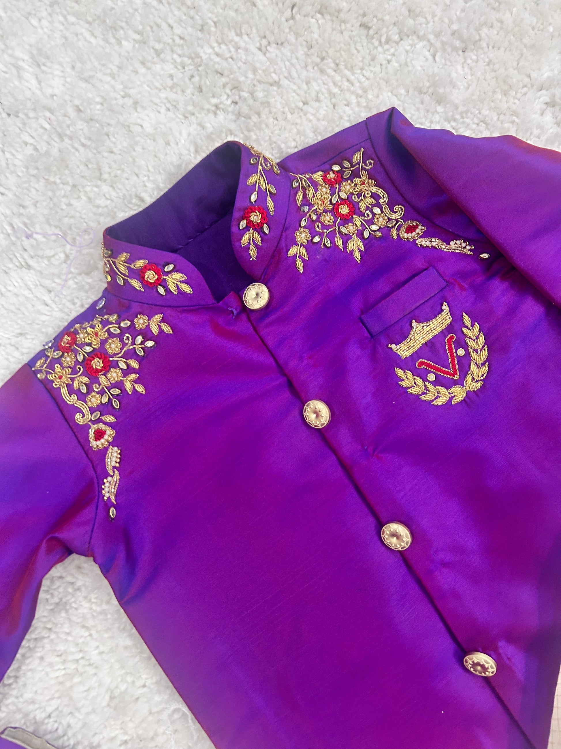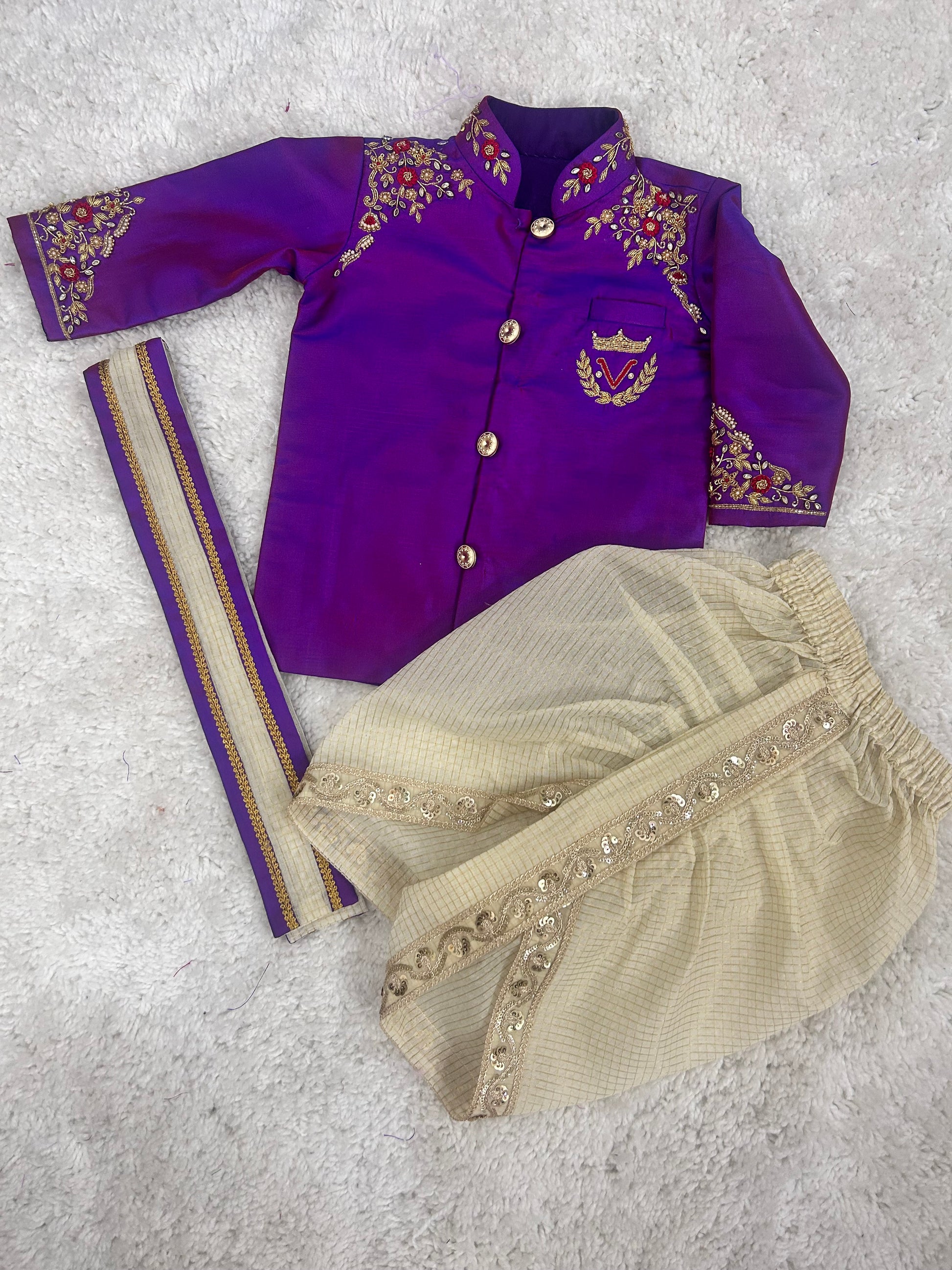 ✨ Dress your little one in timeless elegance with our Premium Boys Raw Silk Kurta & Chanderi Dhoti Set.
