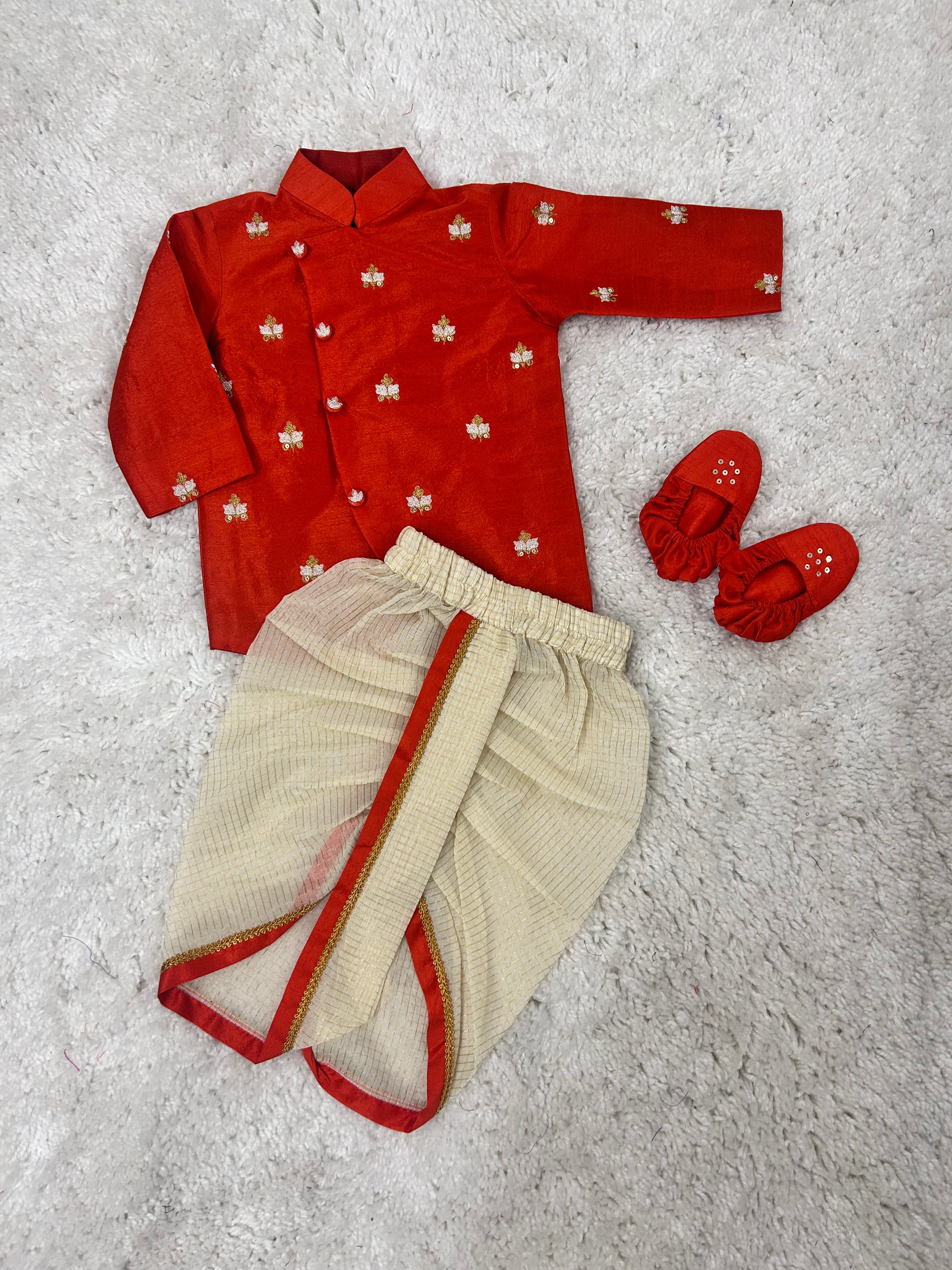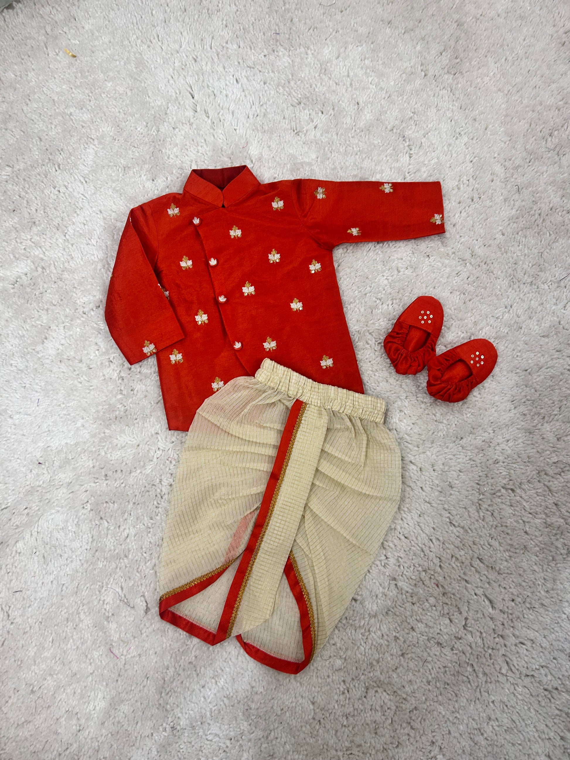 Add a pop of tradition to your child’s wardrobe with this vibrant and elegant kurtha set.