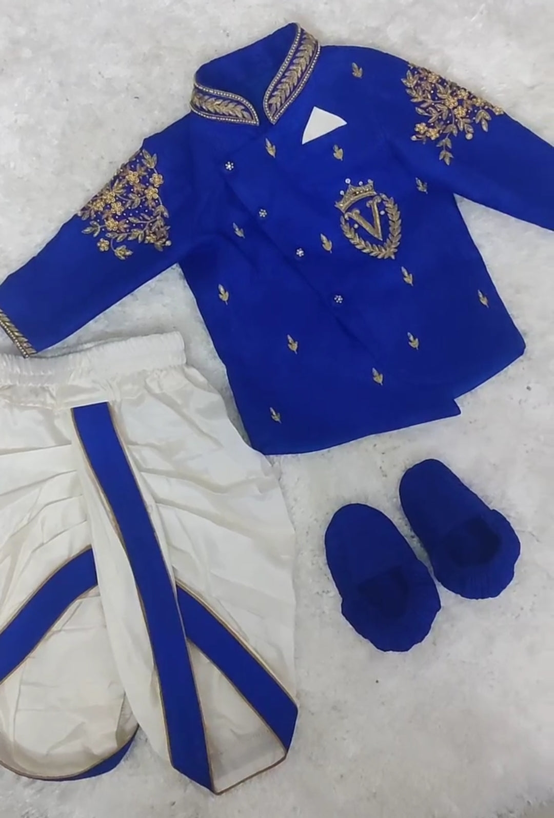 ✨ Dress your little one in timeless elegance with our Premium Boys Raw Silk Kurta & Chanderi Dhoti Set.