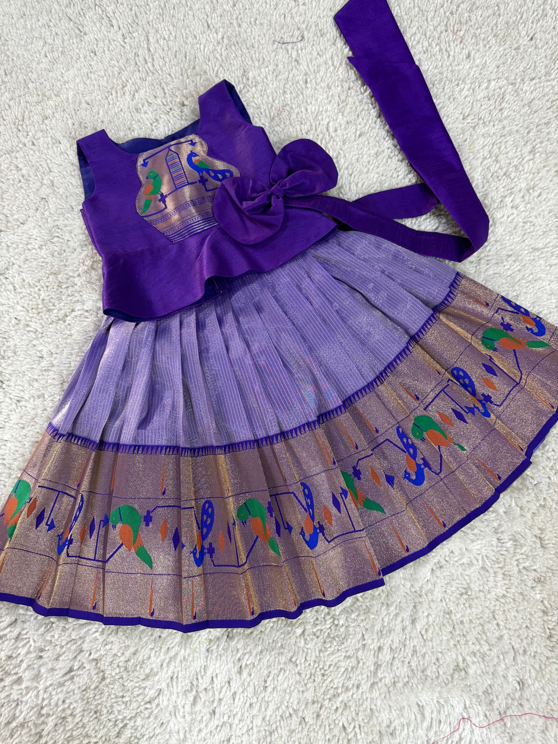 This charming kids tissue lehenga is a perfect blend of beauty and comfort. Crafted from soft, shimmering tissue fabric, the lehenga features embellishments that add a touch of sparkle, making it an ideal choice for weddings, festivals, or any special occasion. The flowy silhouette ensures easy movement, allowing your little one to dance and play with ease. Paired with a stylish blouse, this lehenga offers a royal look for your child while ensuring comfort all day long. Perfect for creating magical memories, this outfit will make your little princess shine with elegance.
