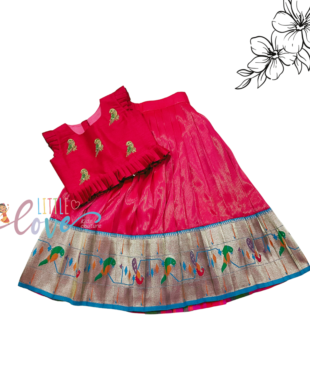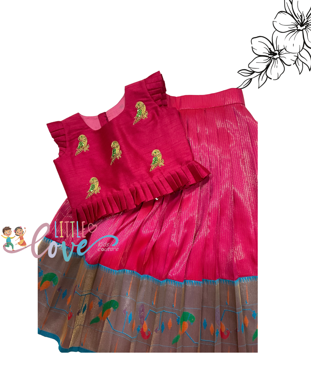 This charming kids tissue lehenga is a perfect blend of beauty and comfort. Crafted from soft, shimmering tissue fabric, the lehenga features embellishments that add a touch of sparkle, making it an ideal choice for weddings, festivals, or any special occasion. The flowy silhouette ensures easy movement, allowing your little one to dance and play with ease. Paired with a stylish blouse, this lehenga offers a royal look for your child while ensuring comfort all day long. Perfect for creating magical memories, this outfit will make your little princess shine with elegance.