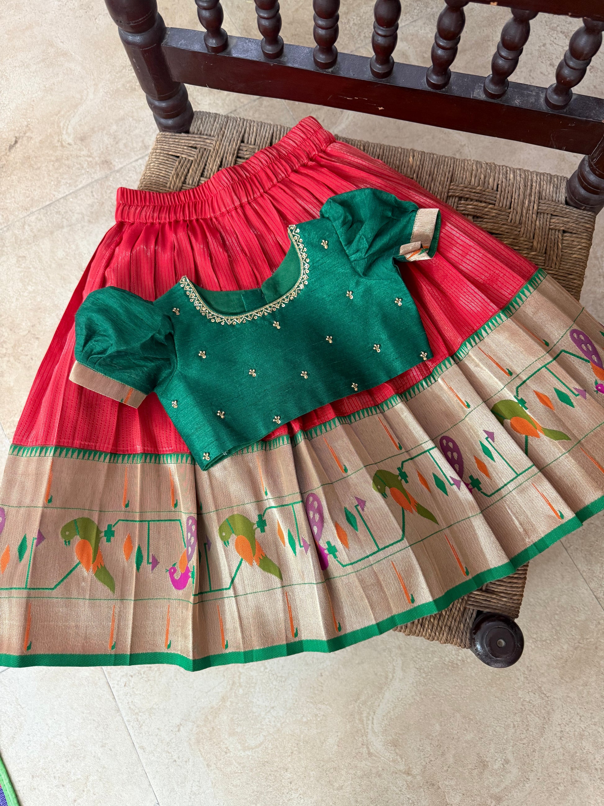 This charming kids tissue lehenga is a perfect blend of beauty and comfort. Crafted from soft, shimmering tissue fabric, the lehenga features embellishments that add a touch of sparkle, making it an ideal choice for weddings, festivals, or any special occasion. The flowy silhouette ensures easy movement, allowing your little one to dance and play with ease. Paired with a stylish blouse, this lehenga offers a royal look for your child while ensuring comfort all day long. Perfect for creating magical memories, this outfit will make your little princess shine with elegance.